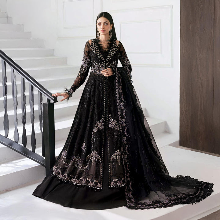 Embroidered Organza Sleeves Left With 3D Flowers & Luxury Hand Embellishment